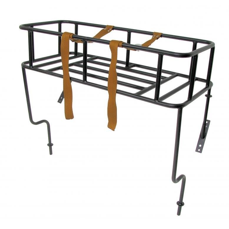 Luggage rack with brackets and straps.