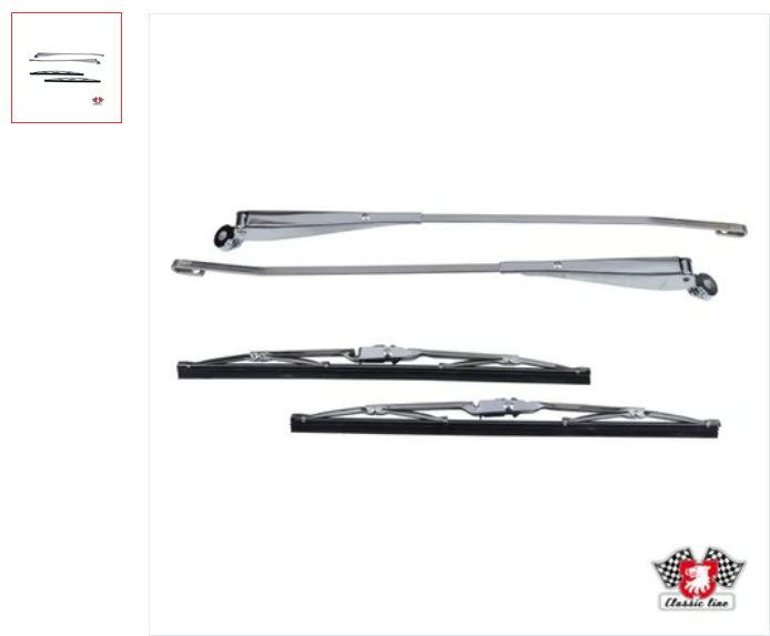 Wiper set with wiper arms and blades (stainless steel polished).