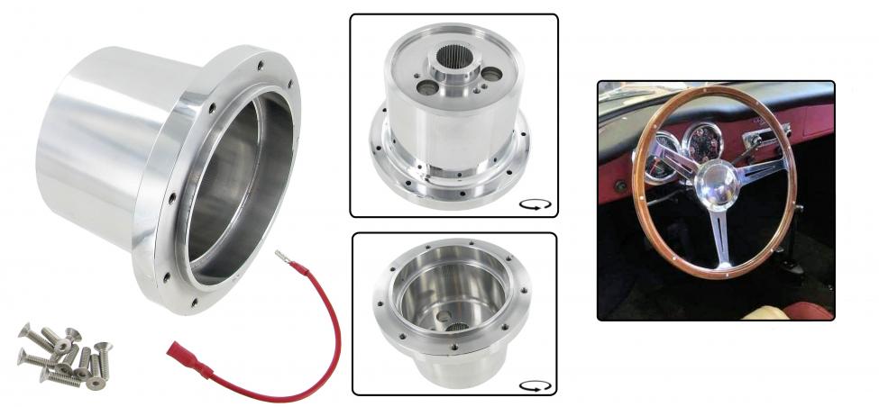 Aluminum wheel hub for Nardi steering wheel design.