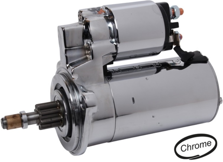 Starter motor chrome 12 Volt 1.4 kW heavy duty.