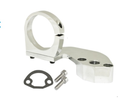 Polished aluminum Combo Mount serves as a fuel pump block-off, breather vent and ignition coil holder. Features a 3/8 NPT outlet for vent. Great looking and functional. Hardware and gasket included.